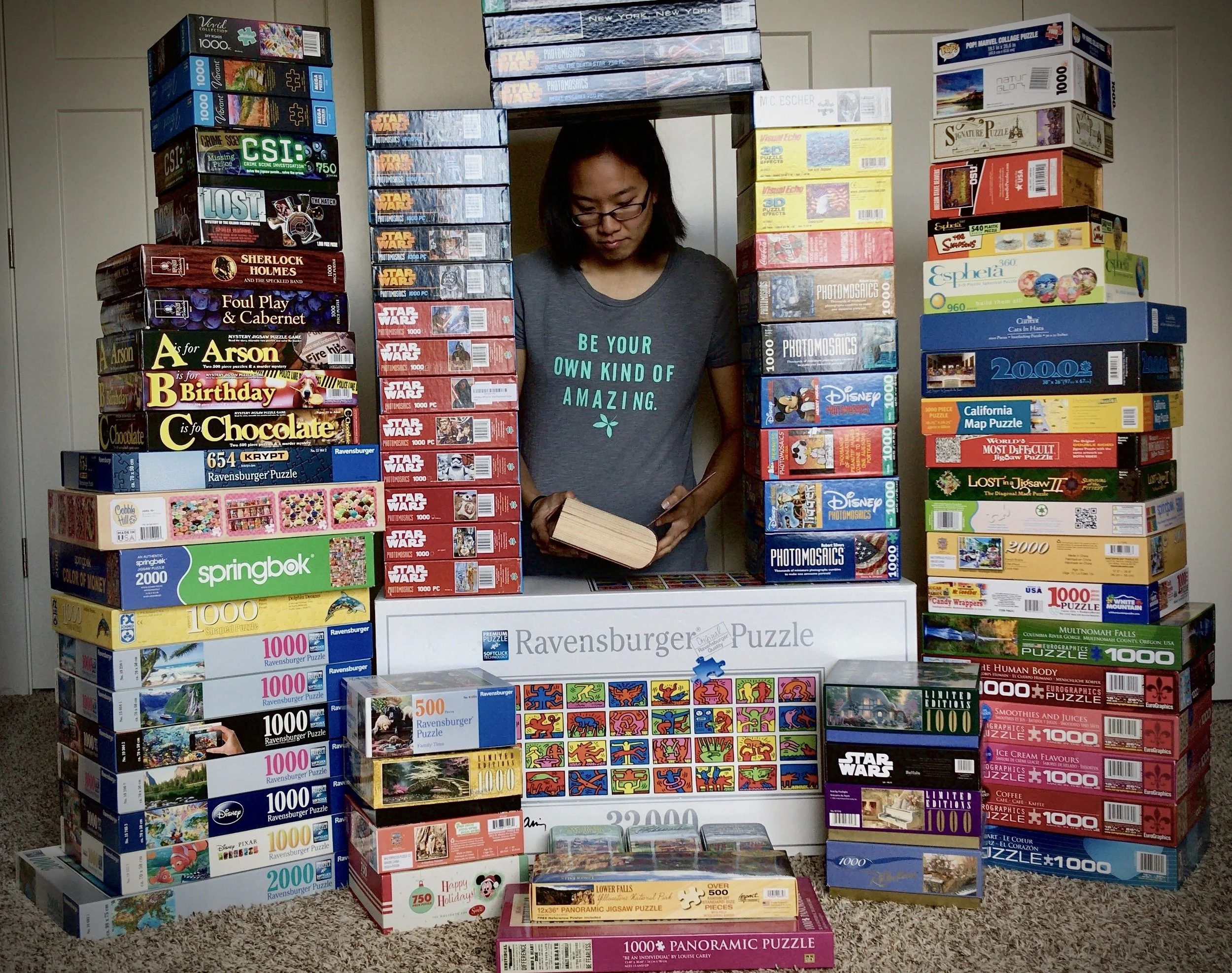 For her 21st birthday, Neenah decided to attempt the largest jigsaw puzzle you could buy at that time: Double Retrospect - 32,000 piece puzzle.